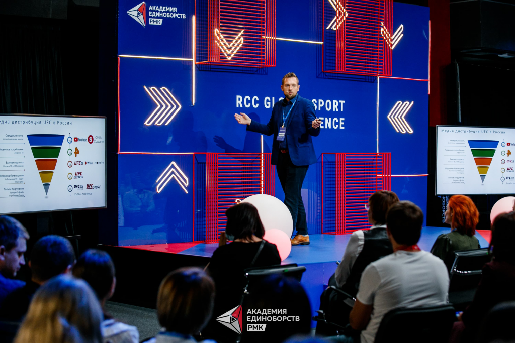 Академия единоборств РМК приняла ежегодную международную спортивную конференцию RCC Global Sport Experience. В мероприятии приняли участие больше 400 человек, спикерами стали десять специалистов спортивной индустрии из США и России. Среди них – управляющий партнёр Newman Sport, сооснователь HOT SPORT, IRONSTAR и ROSA RUN Владимир Волошин, директор UFC Performance Institute по спортивной науке Роман Фомин, вице-президент UFC по России и СНГ Андрей Громковский, директор по развитию холдинга «СБК. Спорт Бизнес Консалтинг» Александра Савраева и другие.